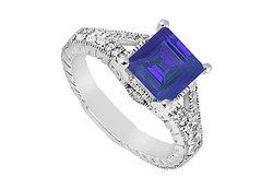 A square diffuse sapphire is prong set in the center & is accented by brilliant cut diamonds on the sides. Made in 14K white gold this ring has a total weight (TGW) of 1.25 carats.
