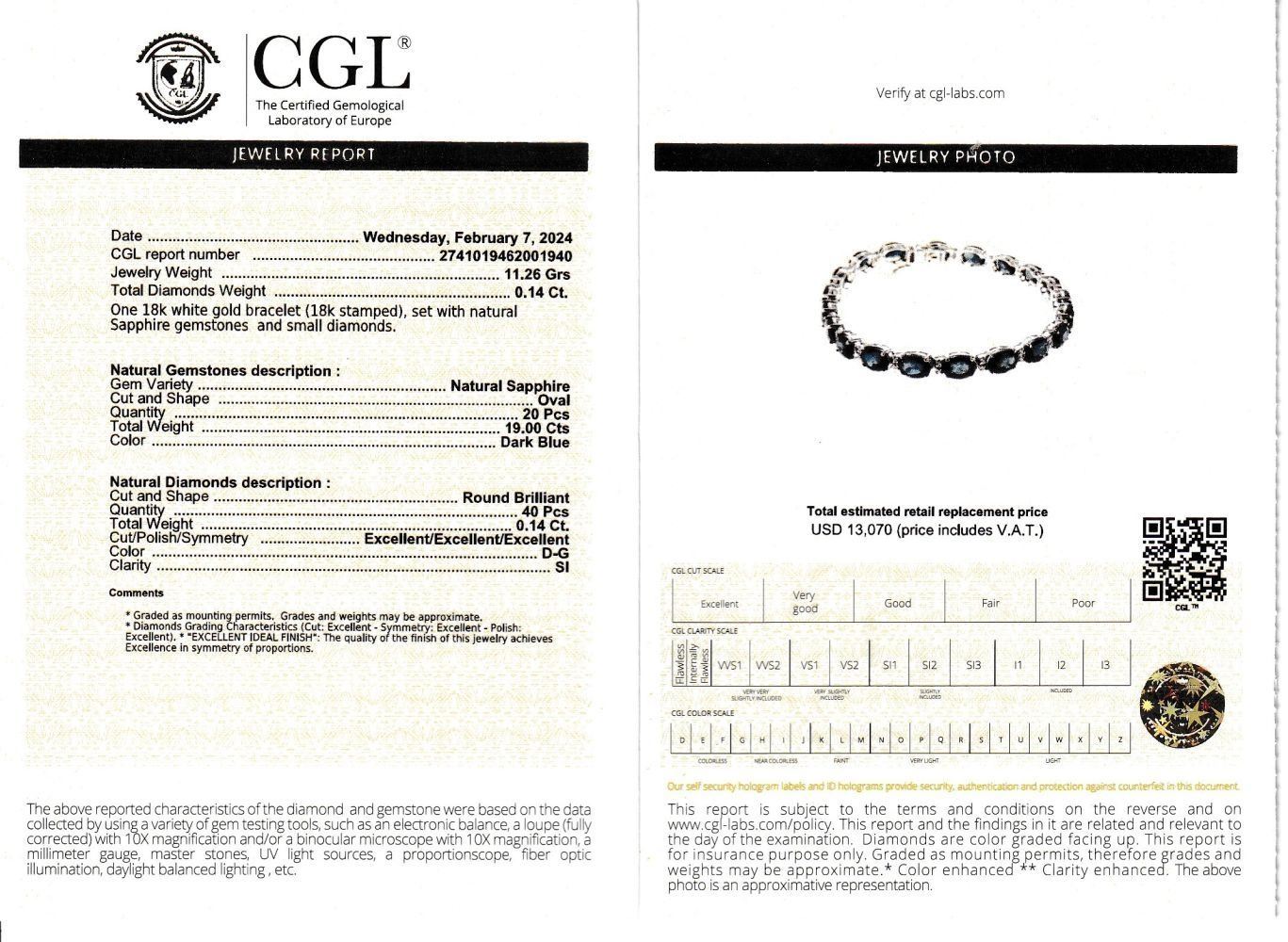APPRAISAL DETAILS: This bracelet is certified and appraised for $13,070.00 estimated retail replacement value.