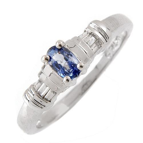 Size 6.5---One oval, .30ct. Ceylon blue sapphire and six baguette, .10ctw. SI diamonds are beautifully displayed in this 10kt. white gold ring.