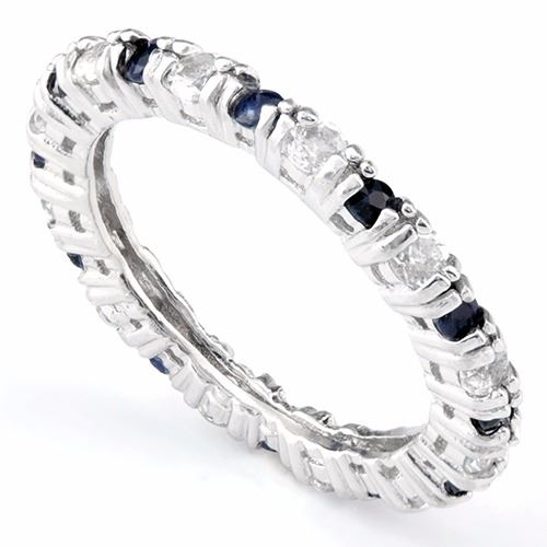Stacking rings are so fun! This ring contains alternating genuine Midnight Blue Sapphire and White Topaz gemstones set in Platinum over Sterling Silver. The gems go completely around in a circle, and the ring is approx. 2.35mm wide (with 3.75mm height). Size 7. 2.7g