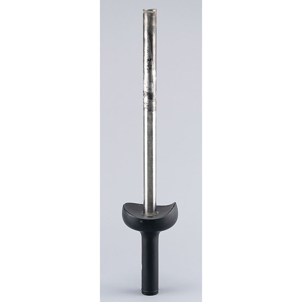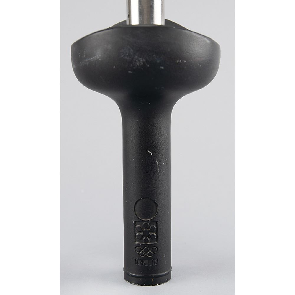 Official 1972 Sapporo Winter Olympics torch, consisting of a cast-blackened aluminum alloy bowl and a stainless steel combustion tube, measuring and overall 25.5Ë in length and 4.75Ë at its widest point, manufactured by Nippon Koki. The torch’s designer, Sori Yanagi, was a pioneer of Japanese industrial design, whose simplistic and pure use of lines and curves were regarded as patently Japanese as they were universal. Inspired by the shape of the Olympic cauldron, this classic torch features a slender black bowl, with the handle impressed with the Sapporo Games logo, and the bottom engraved "Nikkei" and "Yanagi"; lower portion of the tube also bears the Sapporo Games logo, with the manufacturer's stamp below, "GD Nippon Koki Co., Ltd." Both the black bowl and tube exhibit wear from use, with various nicks and scratches handle, the upper portion of the tube charred and blackened, and significant rubbing to the logo at the base of the tube.