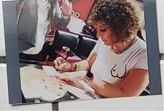 I personally obtained Sara Jay’s autograph. A photo of her signing the piece is included. JSA also authenticated the autograph.