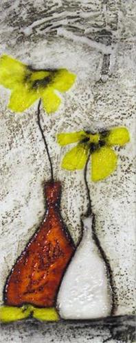 [Canadian, 20th century] UNTITLED; YELLOW FLOWERS Encaustic on paper 18 x 7 3/4 ins. -Signed