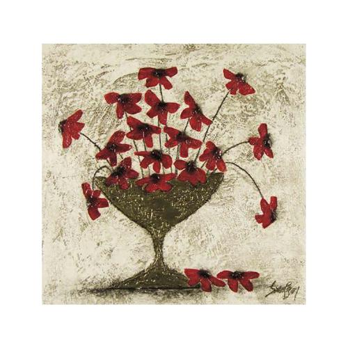 Canadian [20th/21st century] RED FLOWERS IN A GOLD VASE encaustic on canvas 20 x 20 in. (50.8 x 50.8 cm) signed