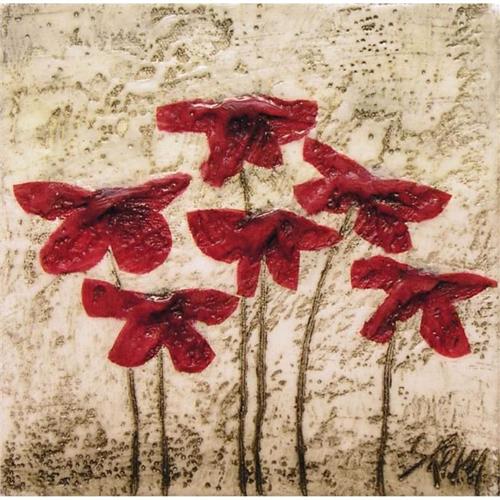 Canadian [b. 1960] POPPIES encaustic on canvas 8 x 8 in. (20.3 x 20.3 cm) signed