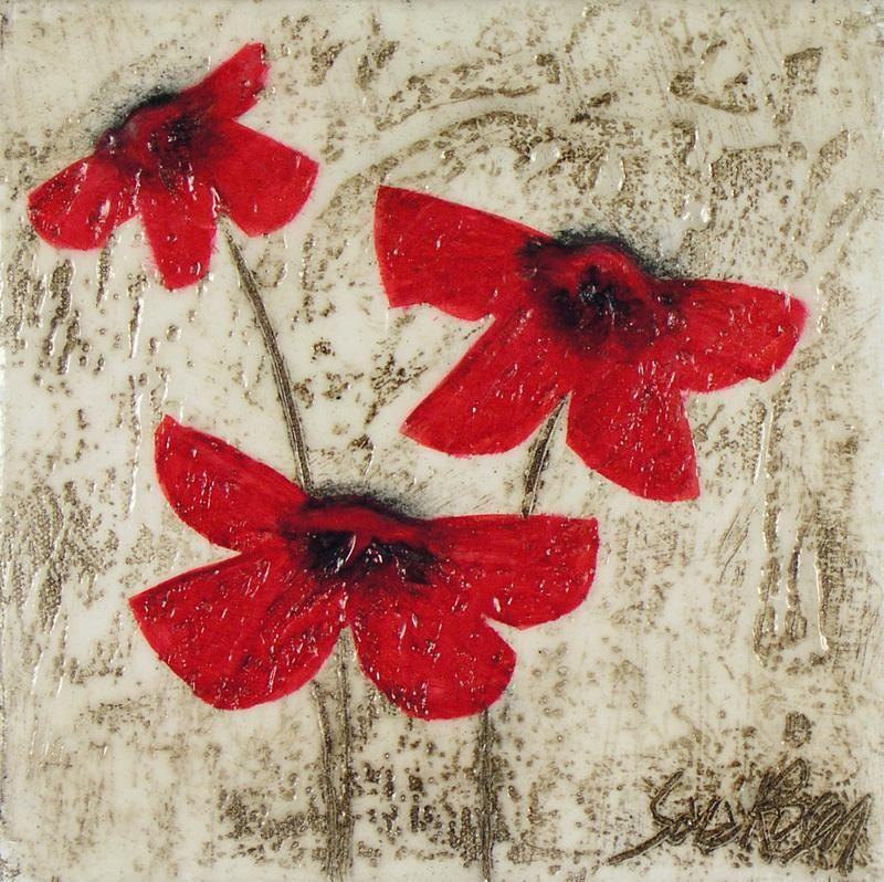 Canadian [b. 1960] THREE POPPIES encaustic on canvas 8 x 8 in. (20.3 x 20.3 cm) signed