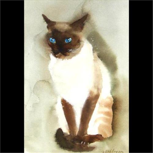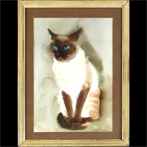 Sara Uffelman (Colorado) Watercolor, Siamese Cat, sight size 16 1/4" x 11 1/4", signed lower right, Provenance: From the Estate of Charles Ragland Bunnell