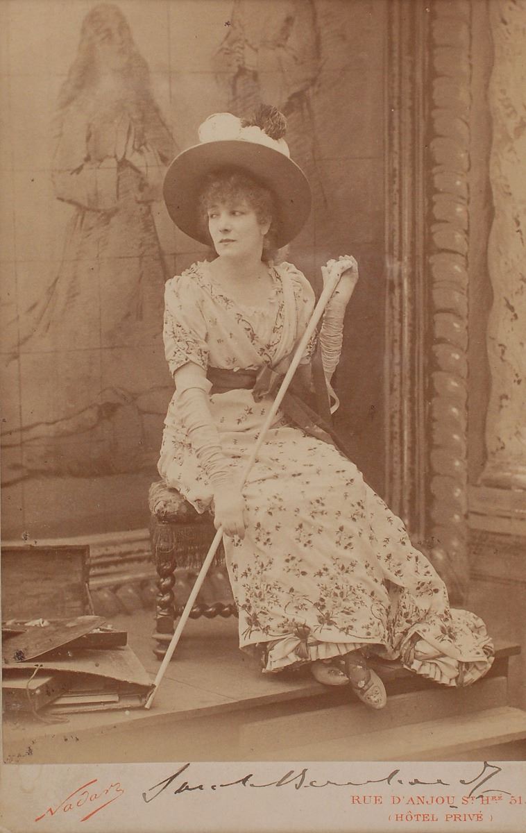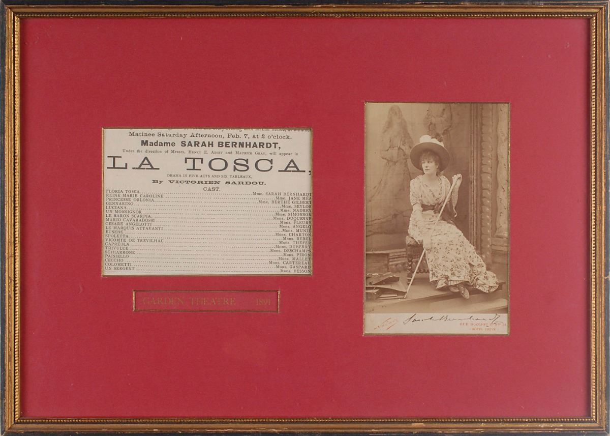 Two items: a lovely 4 x 6.25 cabinet photo of Bernhardt by Nadar, crisply signed on the mount in black ink, “Sarah Bernhardt”; and a vintage matte-finish 6 x 8.25 photo of Coward smoking a cigarette, signed vertically in fountain pen, “Noel Coward.” In overall fine condition, with trivial silvering to dark portions of the Coward background.
