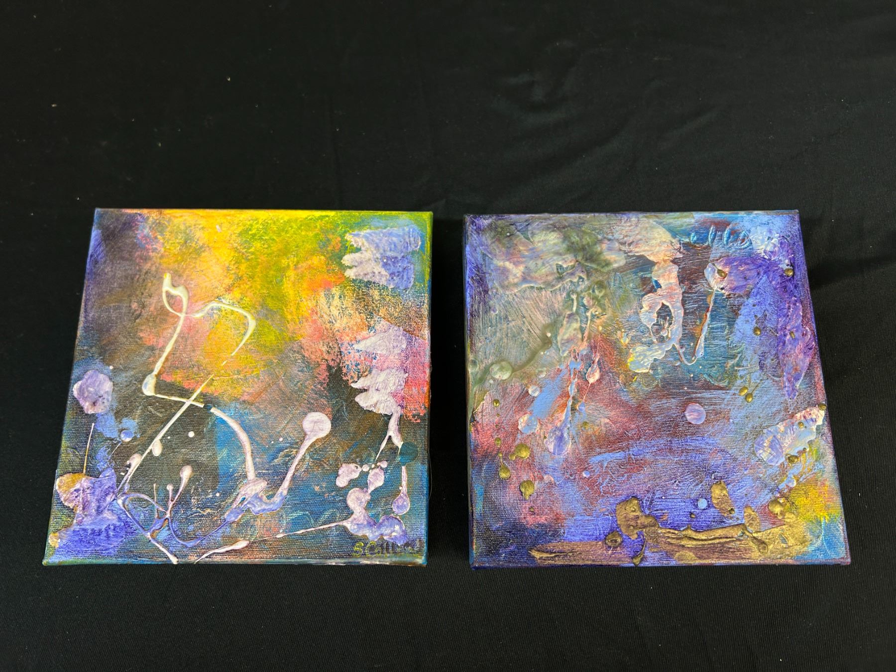 Sarah Collard 2pc Original Abstract Paintings 8x8