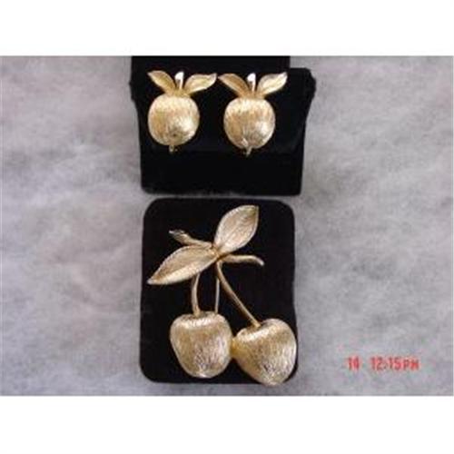 <tr><td>Title:Sarah Coventry Cherry Set Brooch and matching</td></tr>
