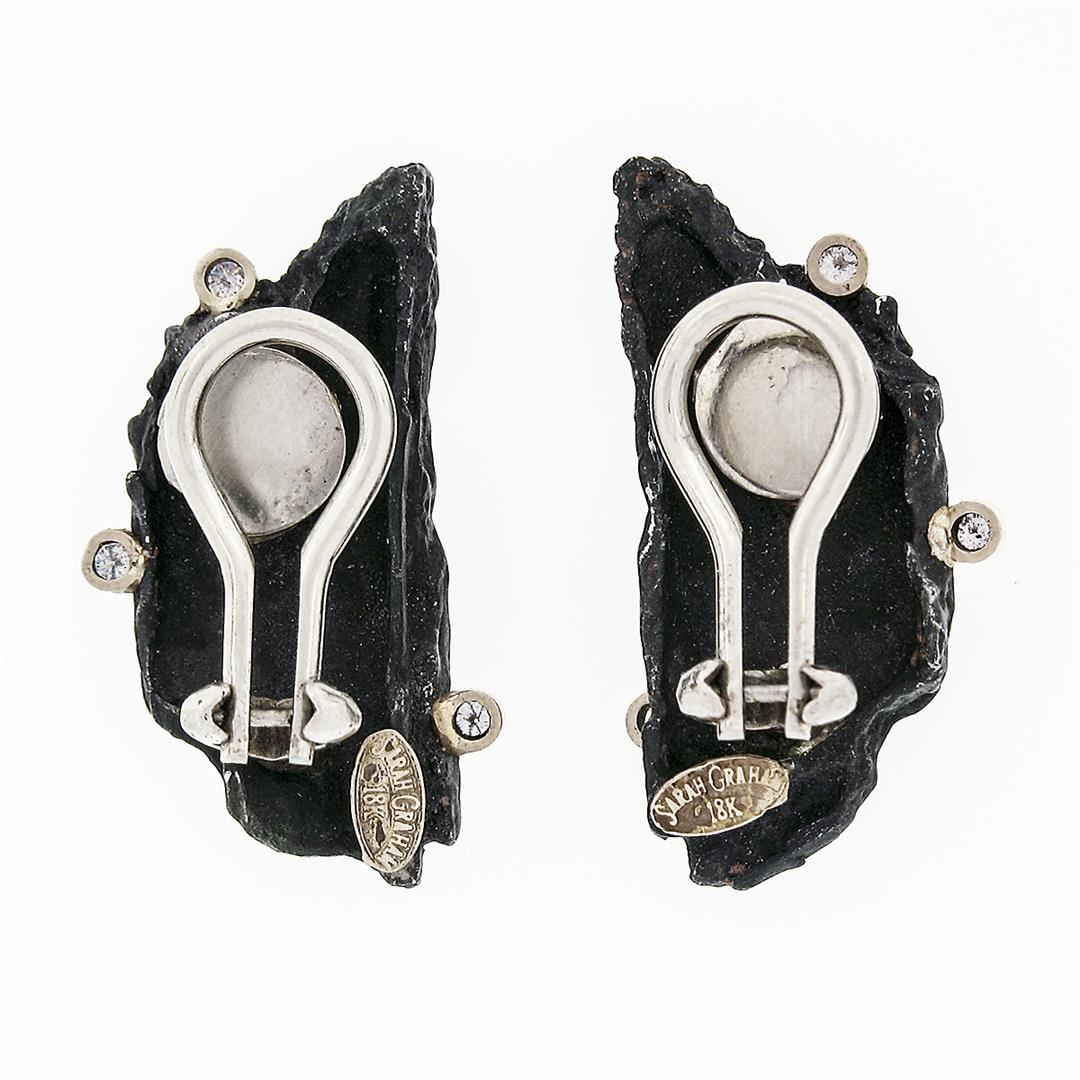 Sarah Graham Cobalt Chrome & 18k White Gold Manzanita Bark Diamond Post Earrings