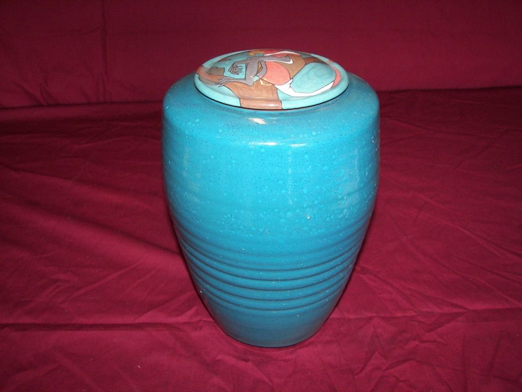 , Sarah McFadan, , Ceramic , Vase With lid , 11" tall x 7" Dia. , Bottom , (1362)