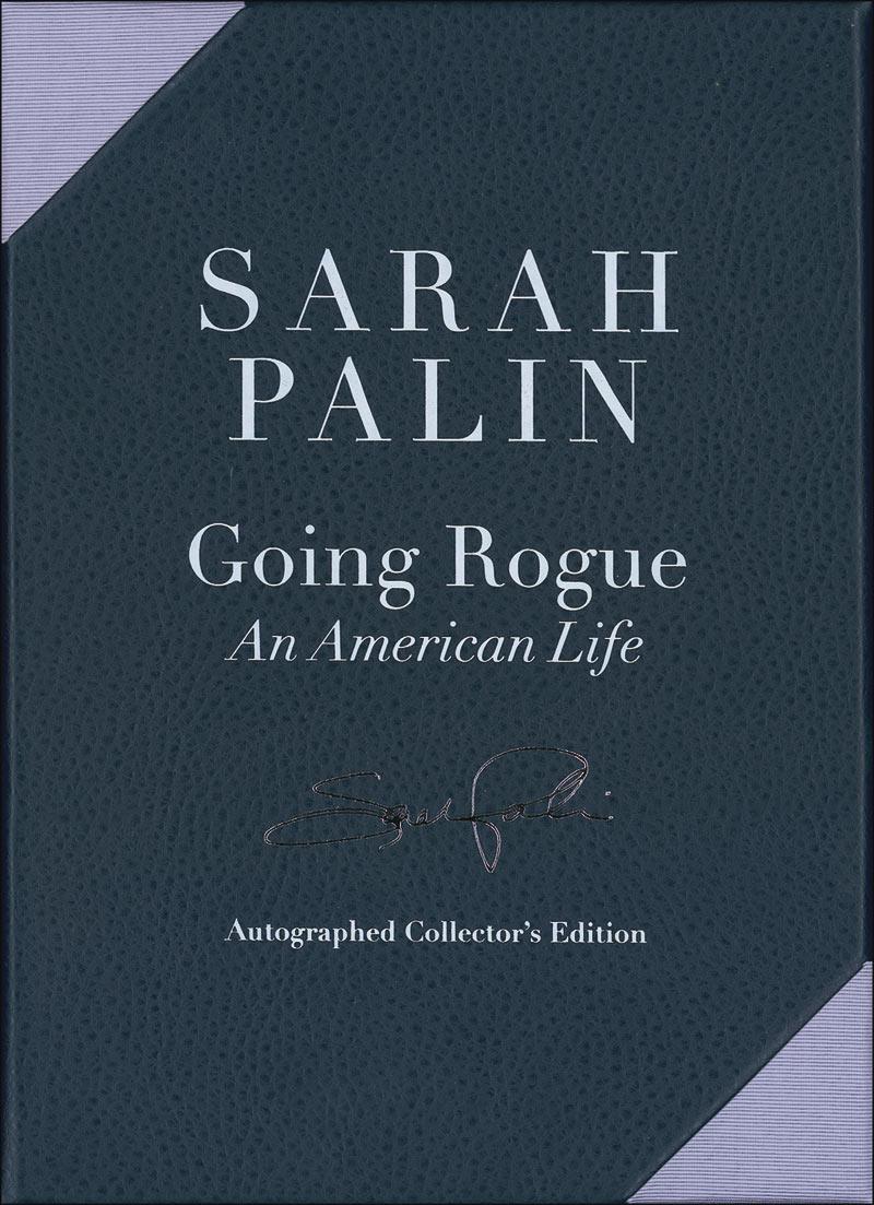 Signed book: Going Rogue: An American Life. Special autographed edition of first edition, later printing. NY: Harper Collins, 2009. Hardcover with dustjacket, 6.25 x 9.25, 413 pages. Signed on a special prefatory page in black ink. Book is housed in its original leather presentation box. In very fine condition. RRAuction COA.