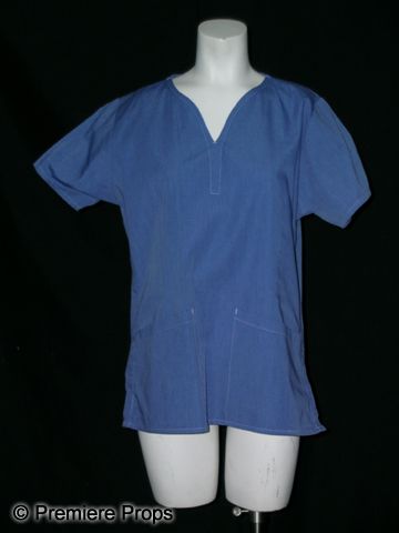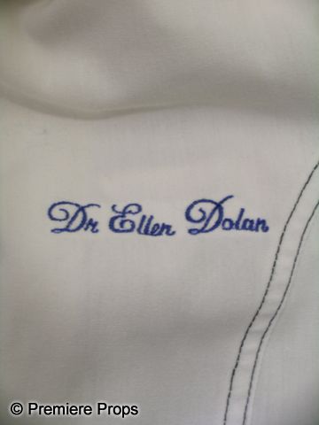 White lab coat and blue surgical shirt, worn by actress Sarah Paulson as Dr. Ellen Dolan in The Spirit (2008). The coat has "Dr. Ellen Dolan" sewn into the chest in blue thread. Dolan is the Spirit's secret confidant, much to the consternation of her father.