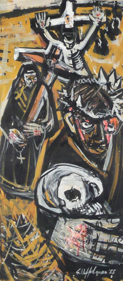 Sarah Uffelman (20th Cent.) Modernist scene Signed lower right '55 24" x 11"