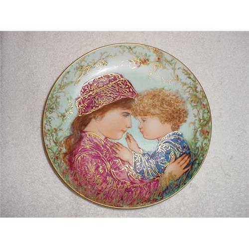 8-1/2" Plate no. 3251E of the Edna Hibel Mothers Day Plate for 1988 Eniquely created in layers of pigments and 18karat gold by Edna Hibel exclusively for this limited edition on pure hard-fire china by Edwin M. Knowles "Sarah and Tess" edition limited to a firing period closing forever on May 7, 1988. The special, tender communion between mother and child I try to convey its magical power through my art Edna Hibel Bradex No. 84-K41-9.5 Mint condition no box or certificate.