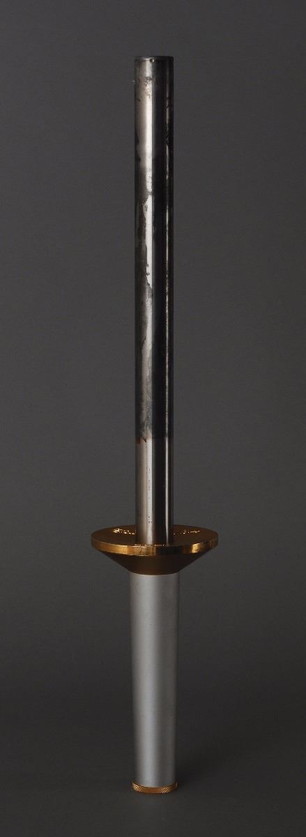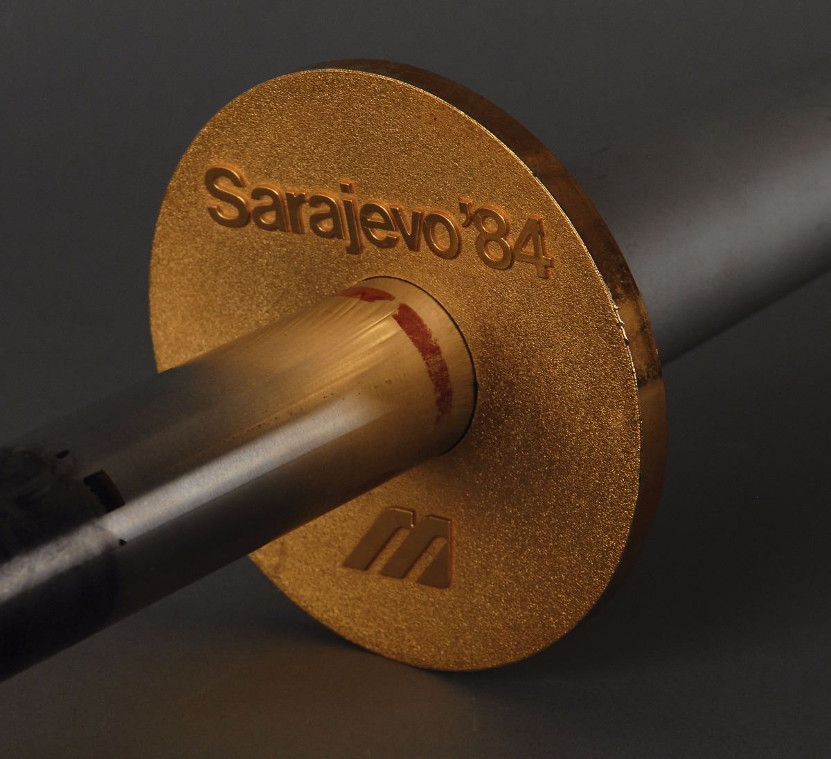 Official 1984 Sarajevo Olympics torch, comprised of lightweight metal with a long combustion tube, measuring 22.75? in length and 4? at its widest point, manufactured by the Mizuno Corporation of Japan. The handle is silver-colored and topped by a gold-tone base inscribed, “Sarajevo ’84,” with the Mizuno logo also raised in relief. The combustion tube bears the Olympic rings and emblem of the Sarajevo games, which has been darkened from having been used in the torch relay. For the Sarajevo relay, the route was split into two routes of east and west so that it would pass through the whole country and promote the Olympic ideal of coexistence. In all, it was carried by 1,600 torchbearers over a distance of 5,289 km. This was the first Winter Olympics held in a Communist state.