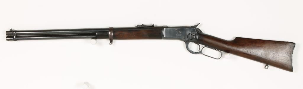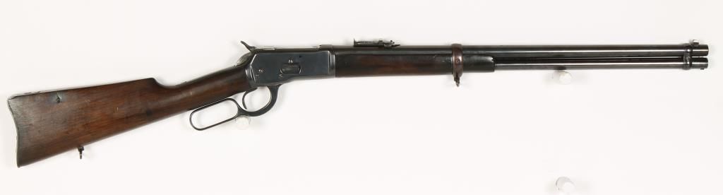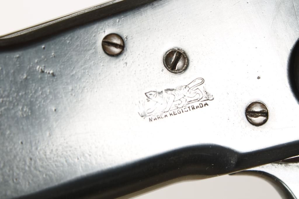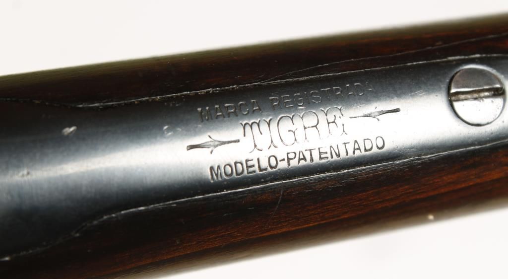 Spanish made copy of the Winchester Model 1892 lever action with 22" round barrel and full length magazine. . The tang behind the hammer is marked "MARCA REGISTRADA/TIGRE/MODELO-PATENTADO." Buttstock is mounted with a carbine style buttplate with a compartment and a sling swivel is located on the bottom edge of the buttstock. Good bore and action. Condition: Good as refinished showing pitting under the bluing and the wood is good. *Curio & Relic Firearm*