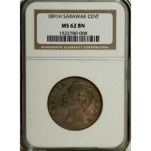 Sarawak: C. Brooke Cent 1891H, KM6, MS62 Brown N