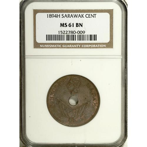 Sarawak: C. Brooke Cent 1894H, KM7, MS61 Brown N
