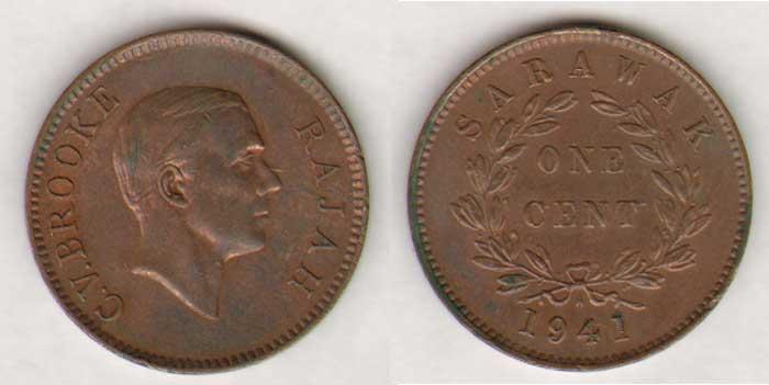 Sarawak. C.V. Brooke Rajah. . One Cent. 1941 H