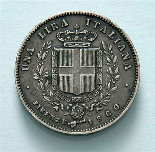 Sardinia - V.E. II - 1 L. 1860 - Ag - Emissioni del Governo della Toscana (1859-1861) - 1 Lira 1860 Zecca: Firenze - Diritto: effigie del Re a destra - Rovescio: stemma di Casa Savoia coronato e circondato dal Collare dell'Annunziata -
