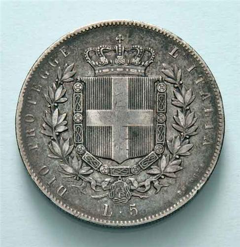 Sardinia - V.E. II - 5 L. 1860 - Ag - Emissioni delle Regie Province dell'Emilia (1859-1861) - 5 Lire 1860 Zecca: Bologna - Diritto: effigie del Re a destra - Rovescio: stemma di Casa Savoia coronato e circondato dal Collare dell'Annunziata - Tipologia non comune - Colpetti e piccoli restauri ai bordi