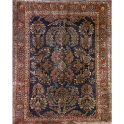 Sarouk Rug, Circa 1940, Blue ground with flowering tree and floral spray field within a palme...