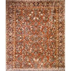 Sarouk Rug, Circa 1940, Red ground with floral spray field within a palmette and, trellisin...