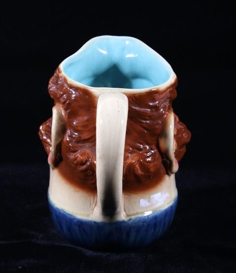 For your consideration in this lot we have a collection of four Sarreguemines French Majolica character jugs originating from the 1880's. The Sarreguemines pottery company was established in 1784 and was known for its floral and fruit pieces along with majolica vases, tureens, and character jugs. The jugs where made by a artists patterned images of people from his village. The jugs show the slightly caricatured faces of four different people, each showing a smiling male face. The pitchers show glazed pottery construction with three numbered across the bottom. The pieces show a colorful exterior with the interior colored blue, green, or tan. The jugs show good condition overall with some light wear on places. The largest of the pitchers measures 8 3/4" tall by 6 1/4" wide.