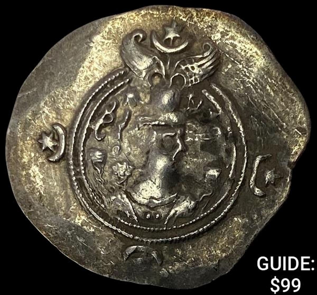 Sasanian Khusro II 591-628 Silver Drachm ABOUT UNCIRCULATED