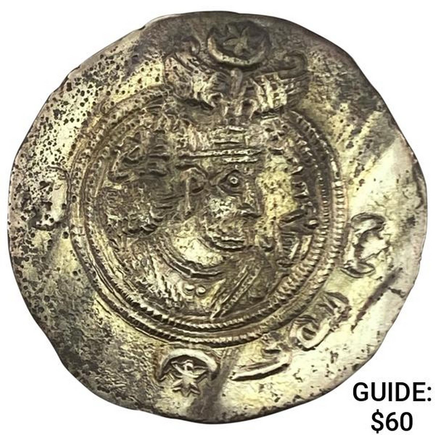 Sasanian Khusro II 591-628 Silver Drachm CLOSELY UNCIRCULATED