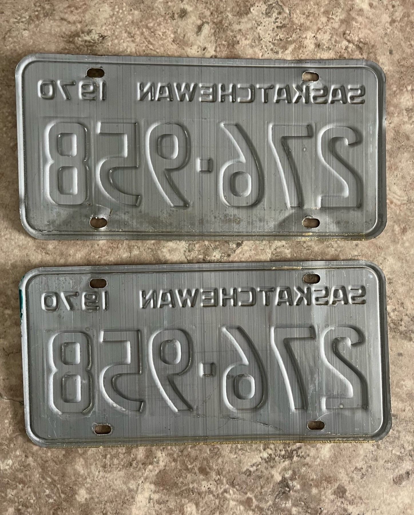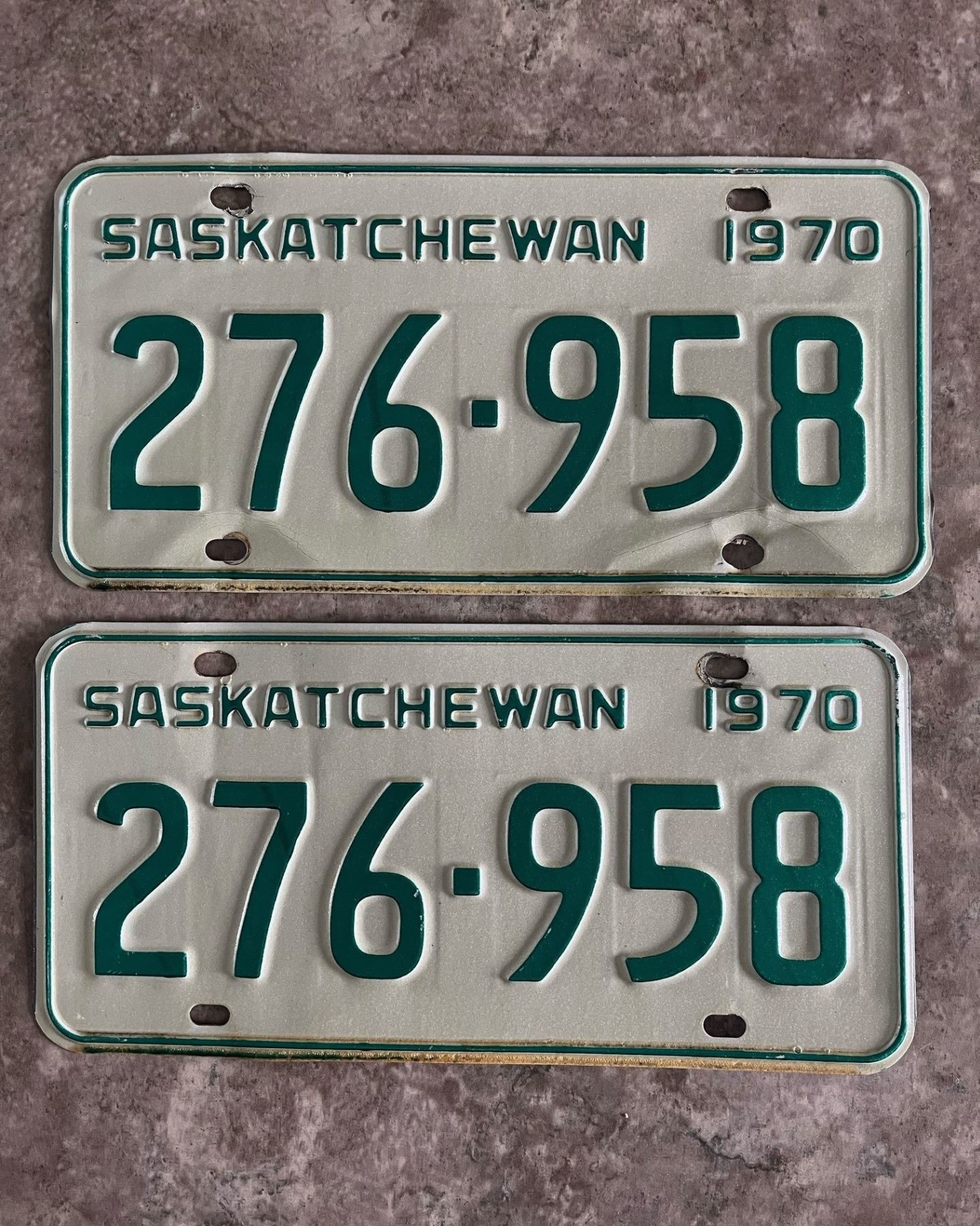 Sask 1970 license plate matching pair. Excellent condition! 276-958