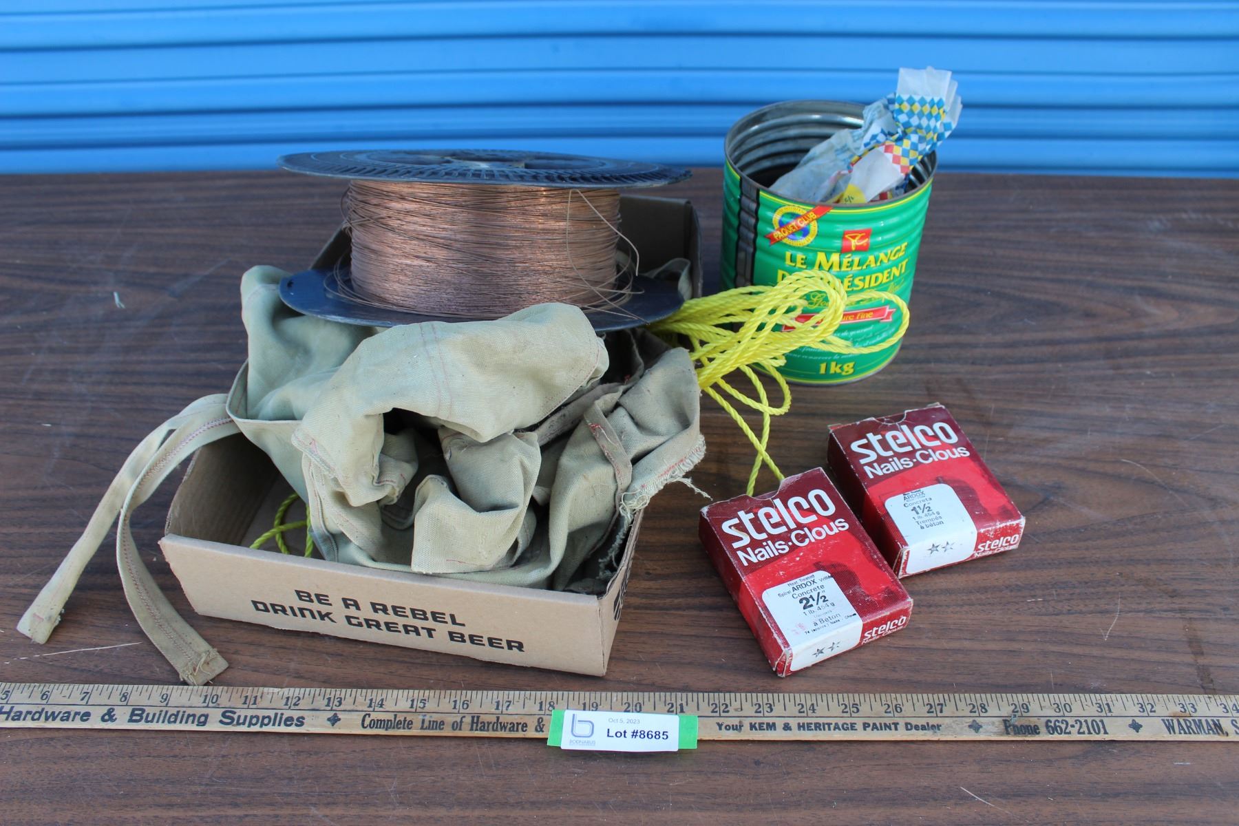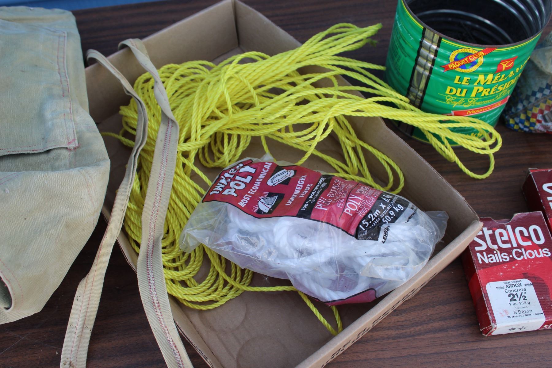 ** Sask CO-OP Apron, Assorted Rope, Roll of Wire, Misc.