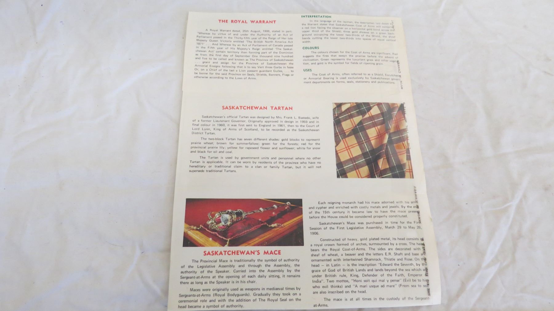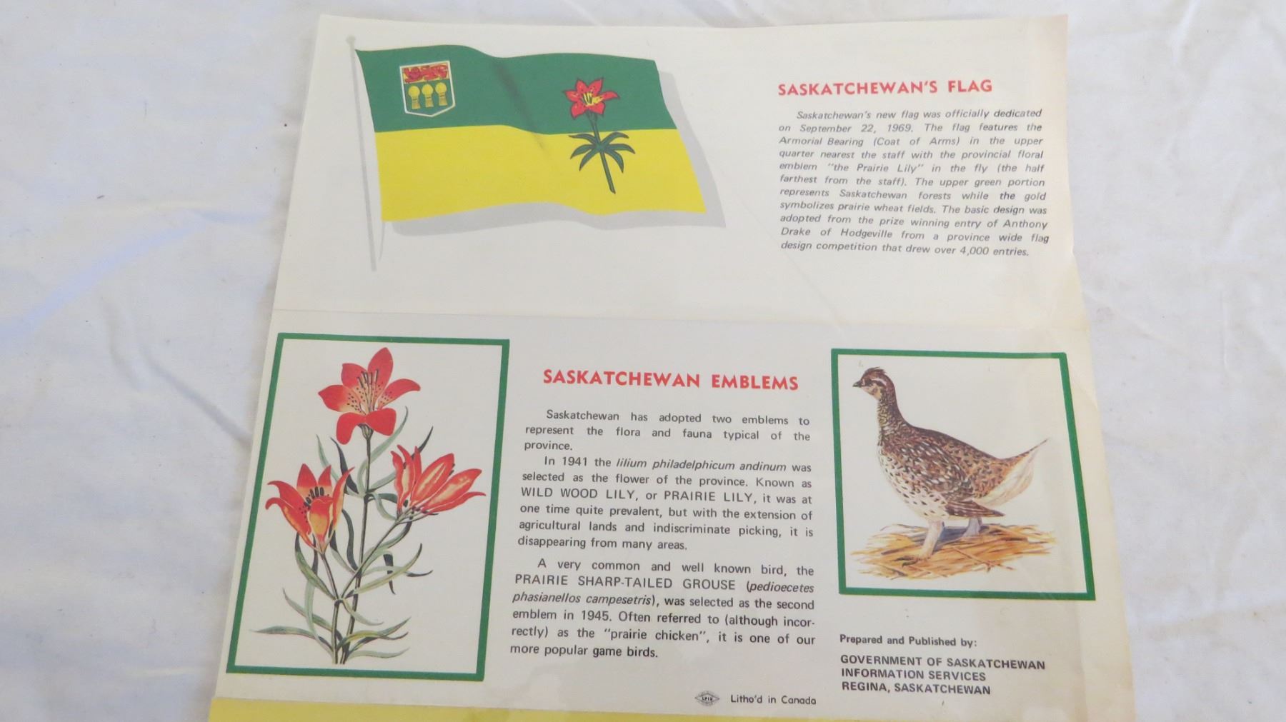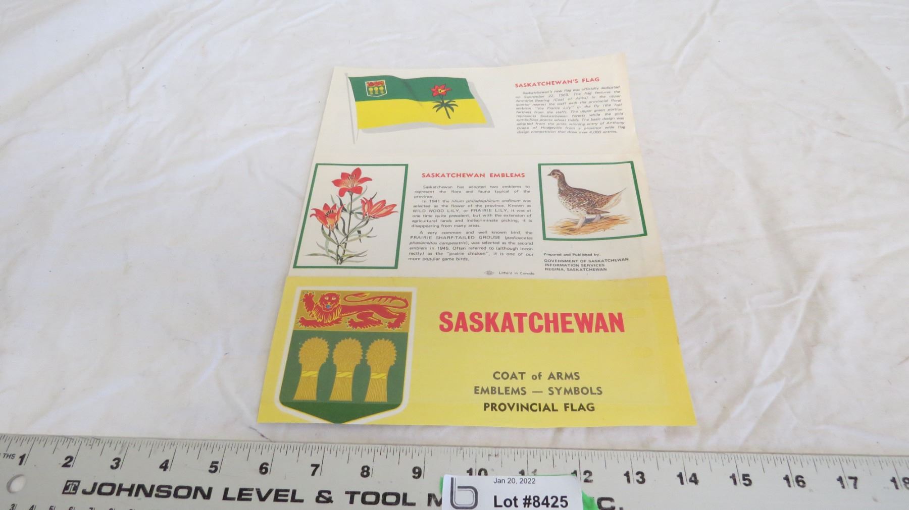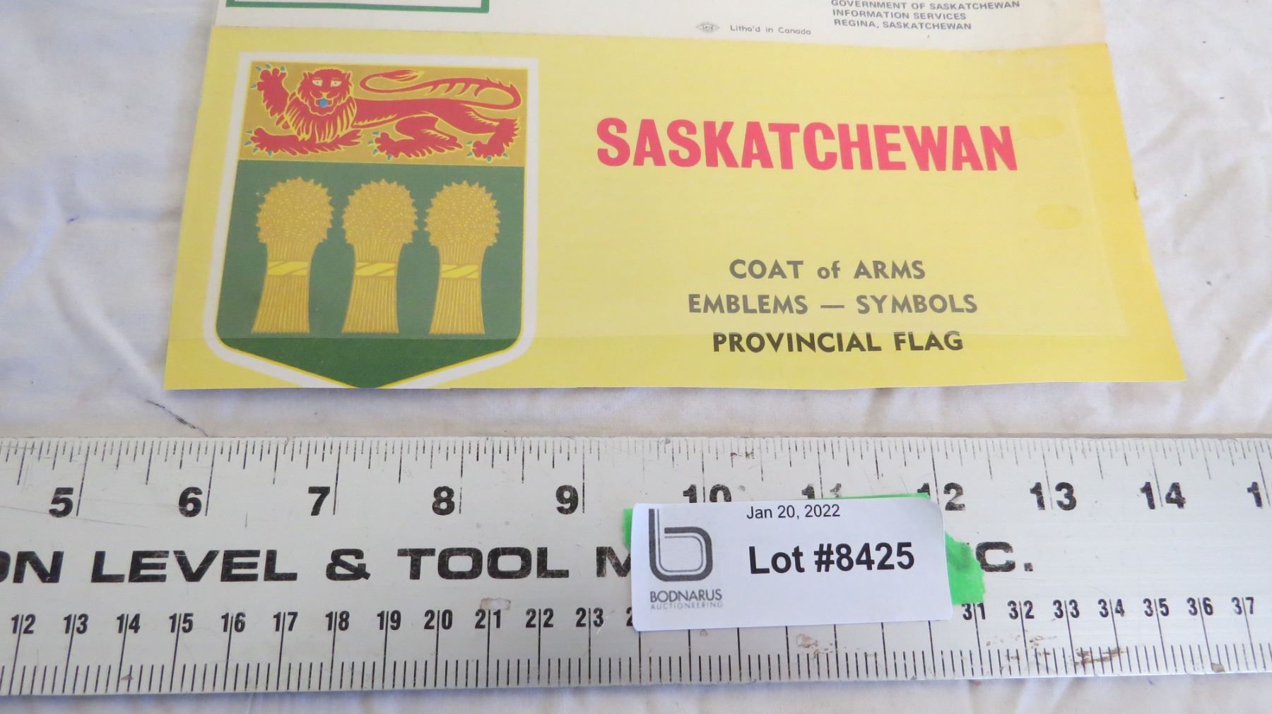 Sask Coat of Arms Emblem symbols provincial flag paper advertising