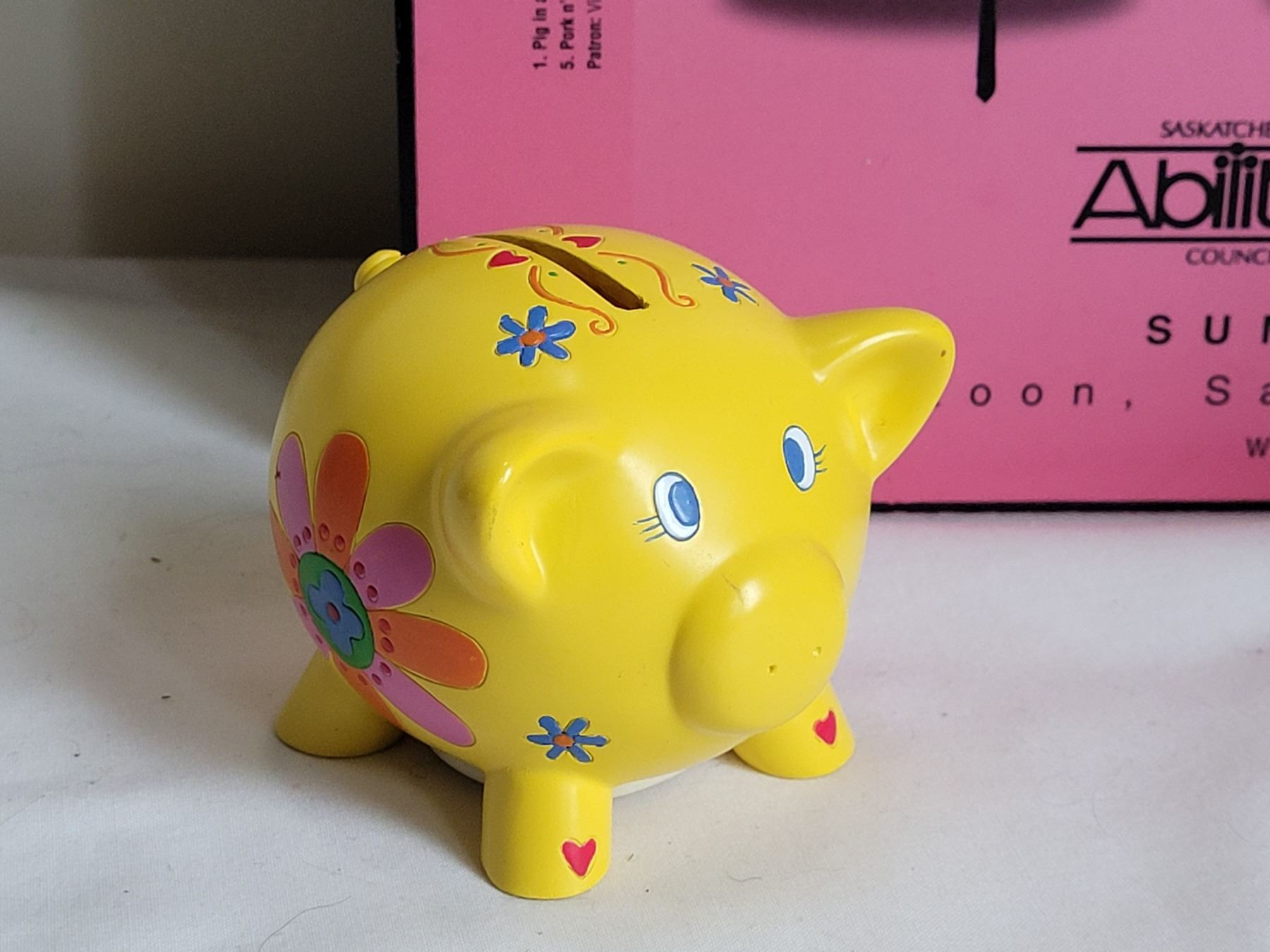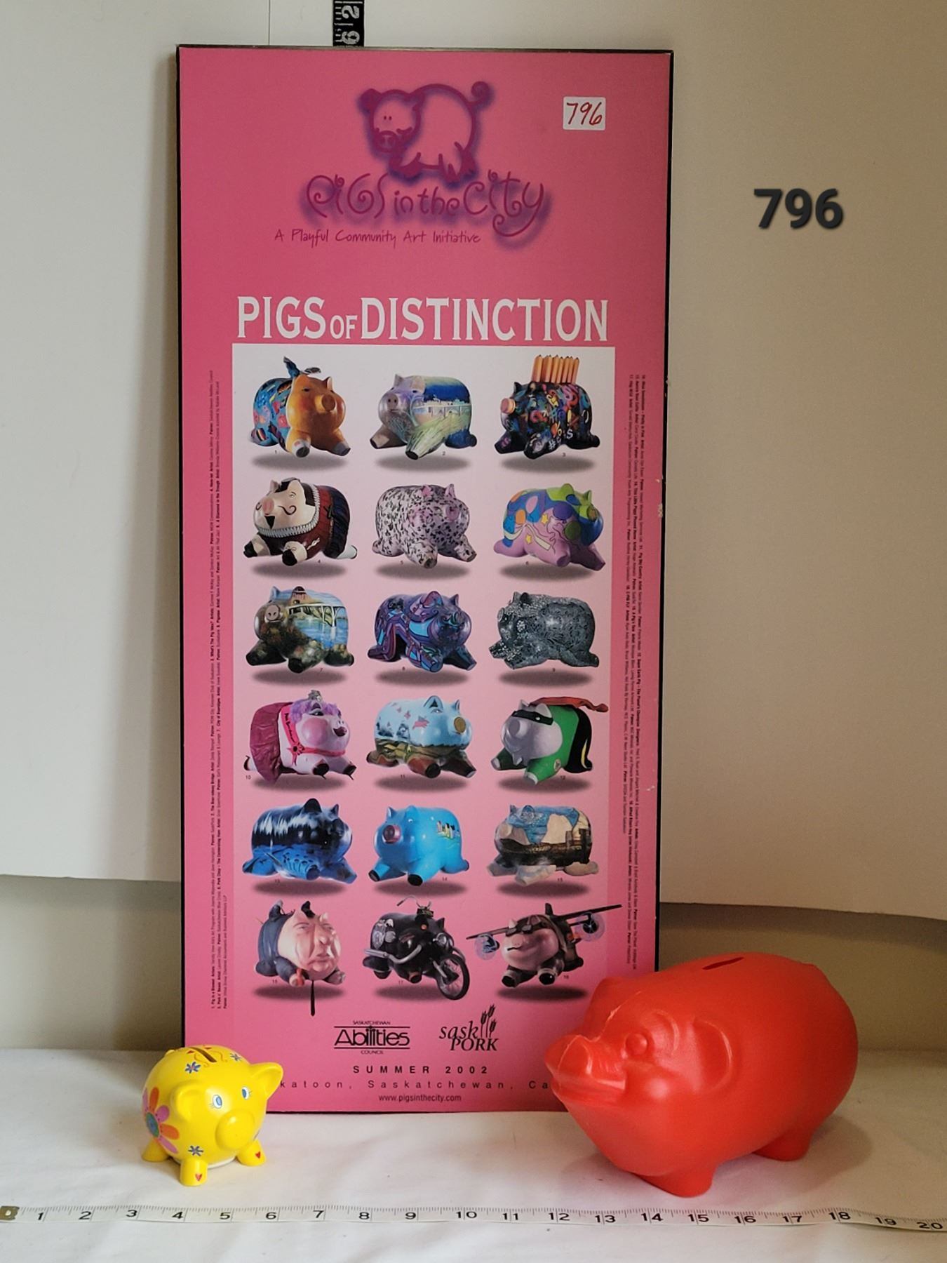 Sask Pork “Pigs of Distinction” collector board & piggy banks.