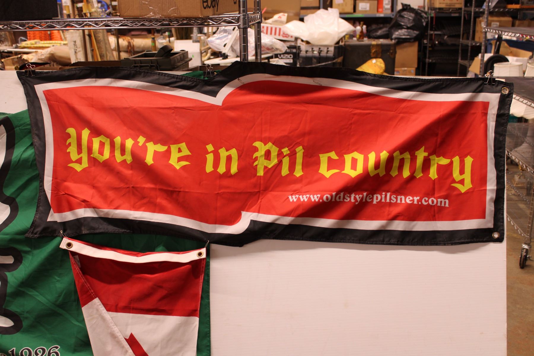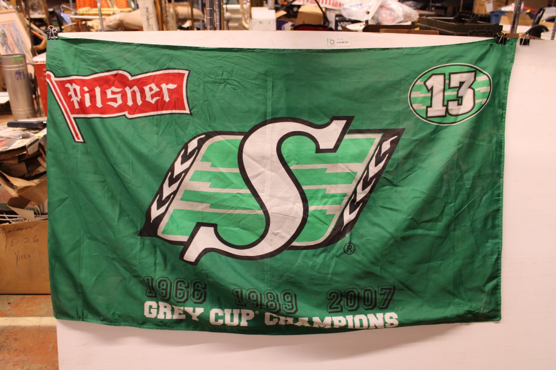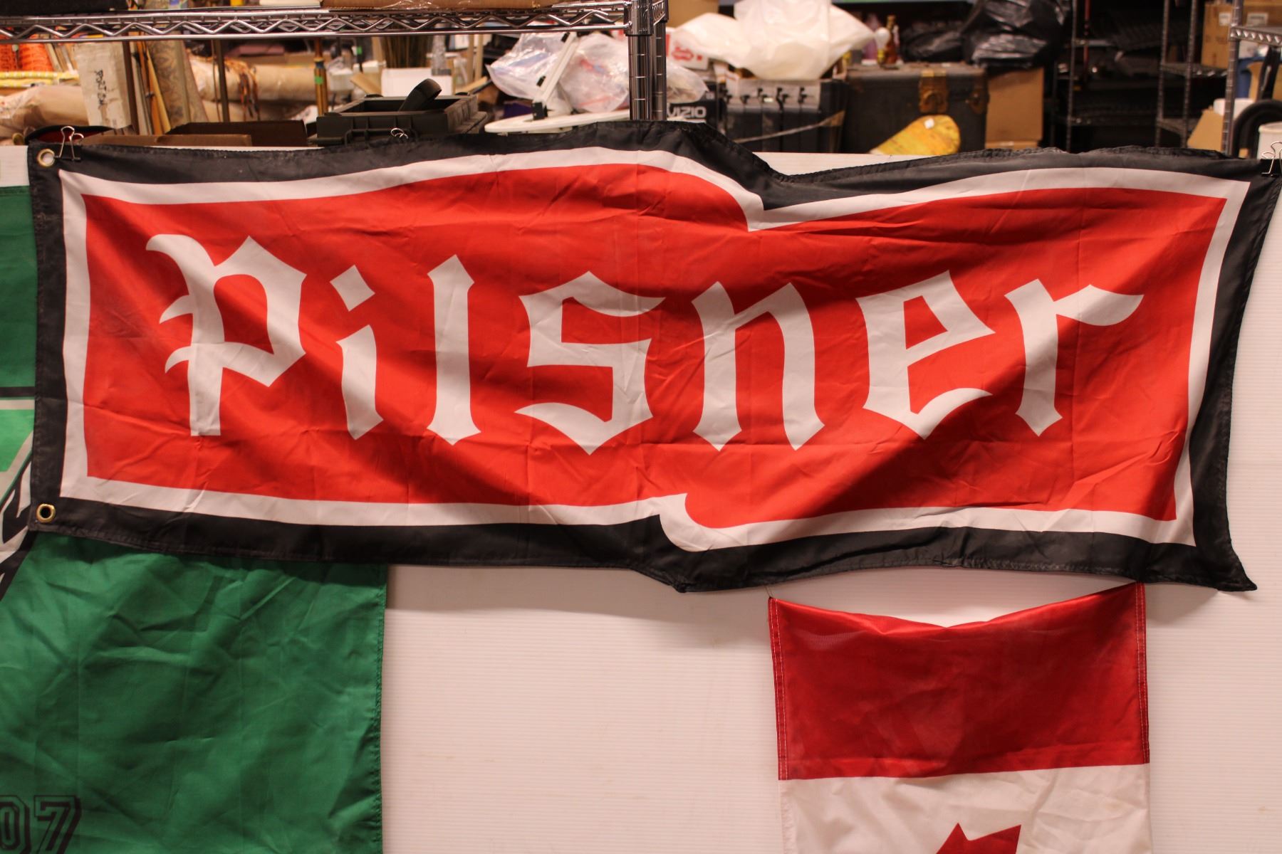 Sask Roughrider Flag, Pilsner Flag, and Canada Flag