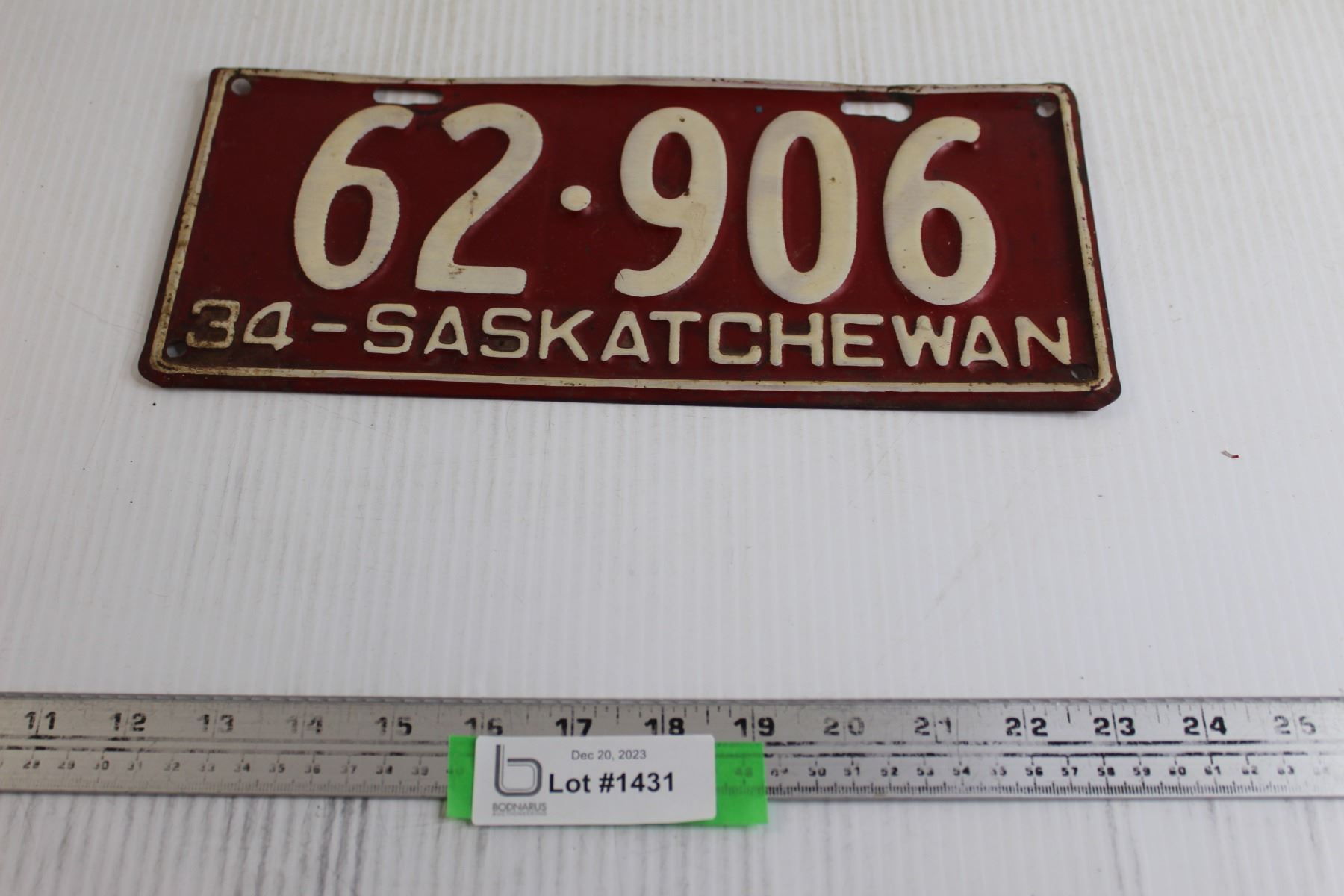 Saskatchewan 1934 License Plate
