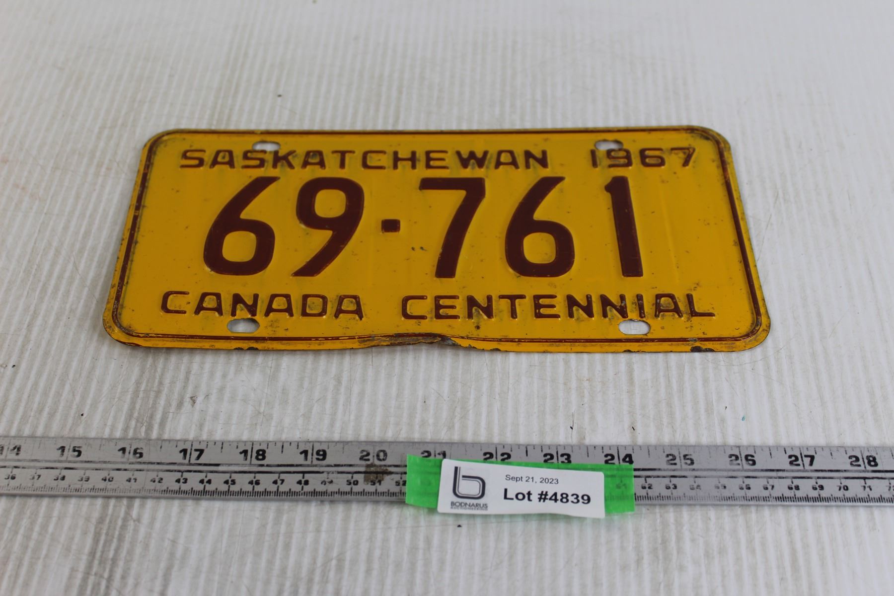 Saskatchewan 1967 License Plate