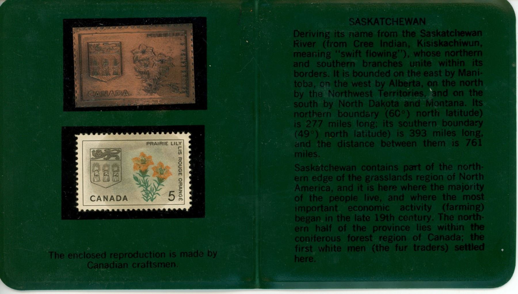 Saskatchewan Canada commemorative Prairie Lily Paper stamp & Metal stamp