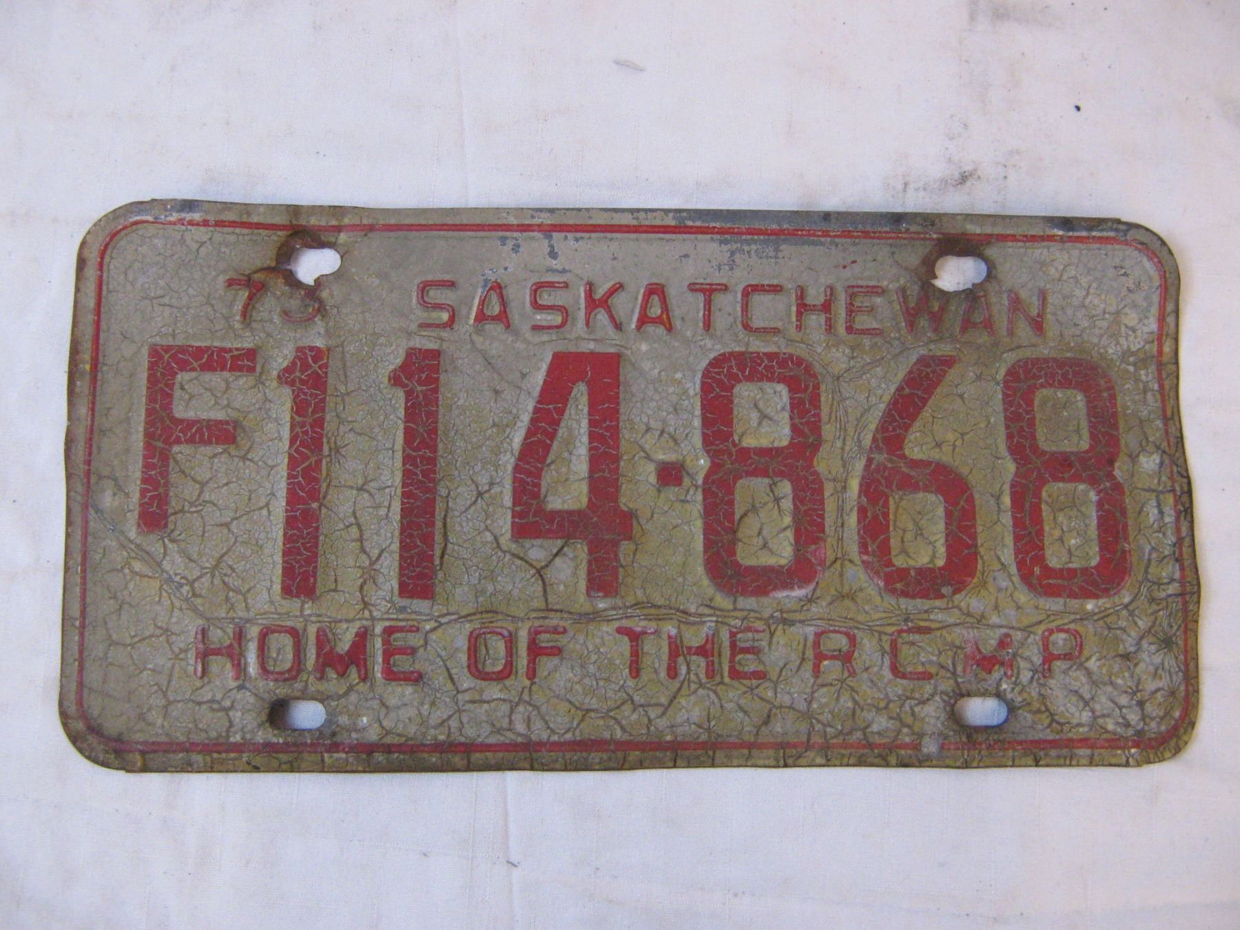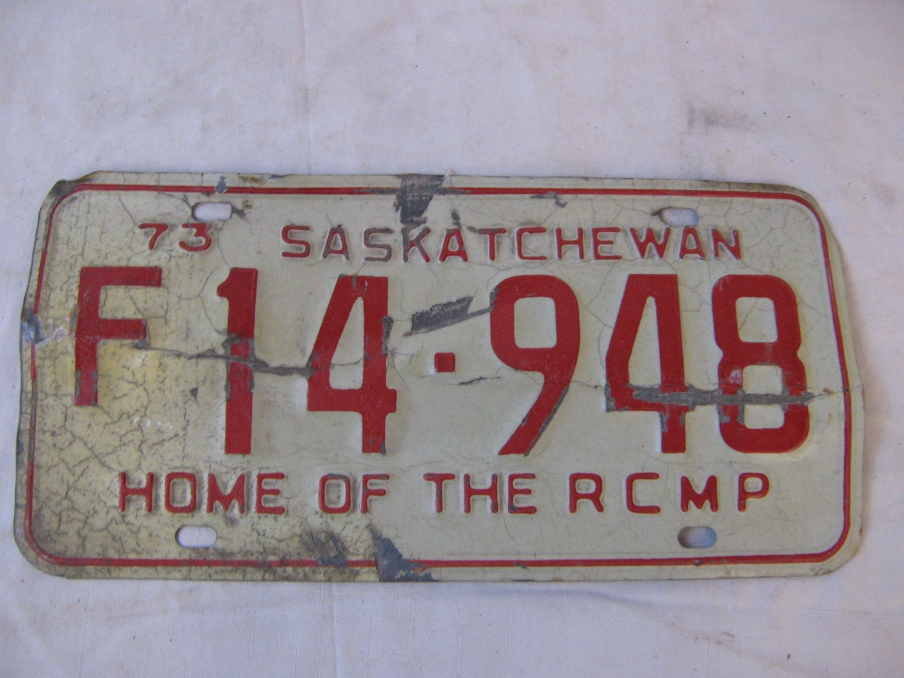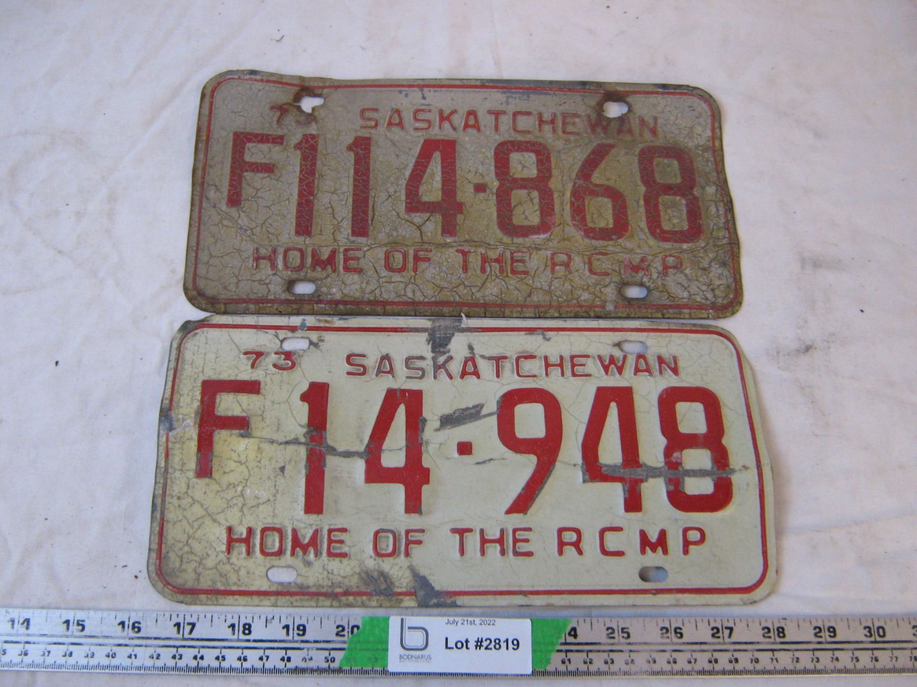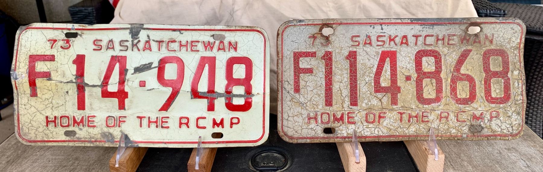 Saskatchewan Home of the RCMP 1973 Matched pair Farm License Plates
