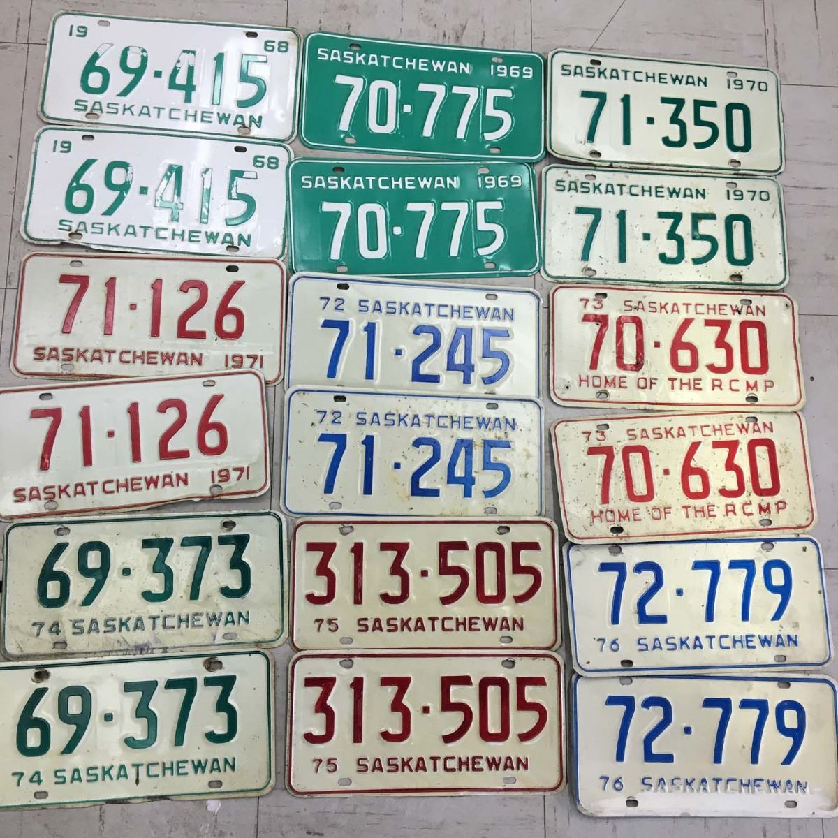 Saskatchewan Licence Plates, Matching Sets (9) (‘68-’76)