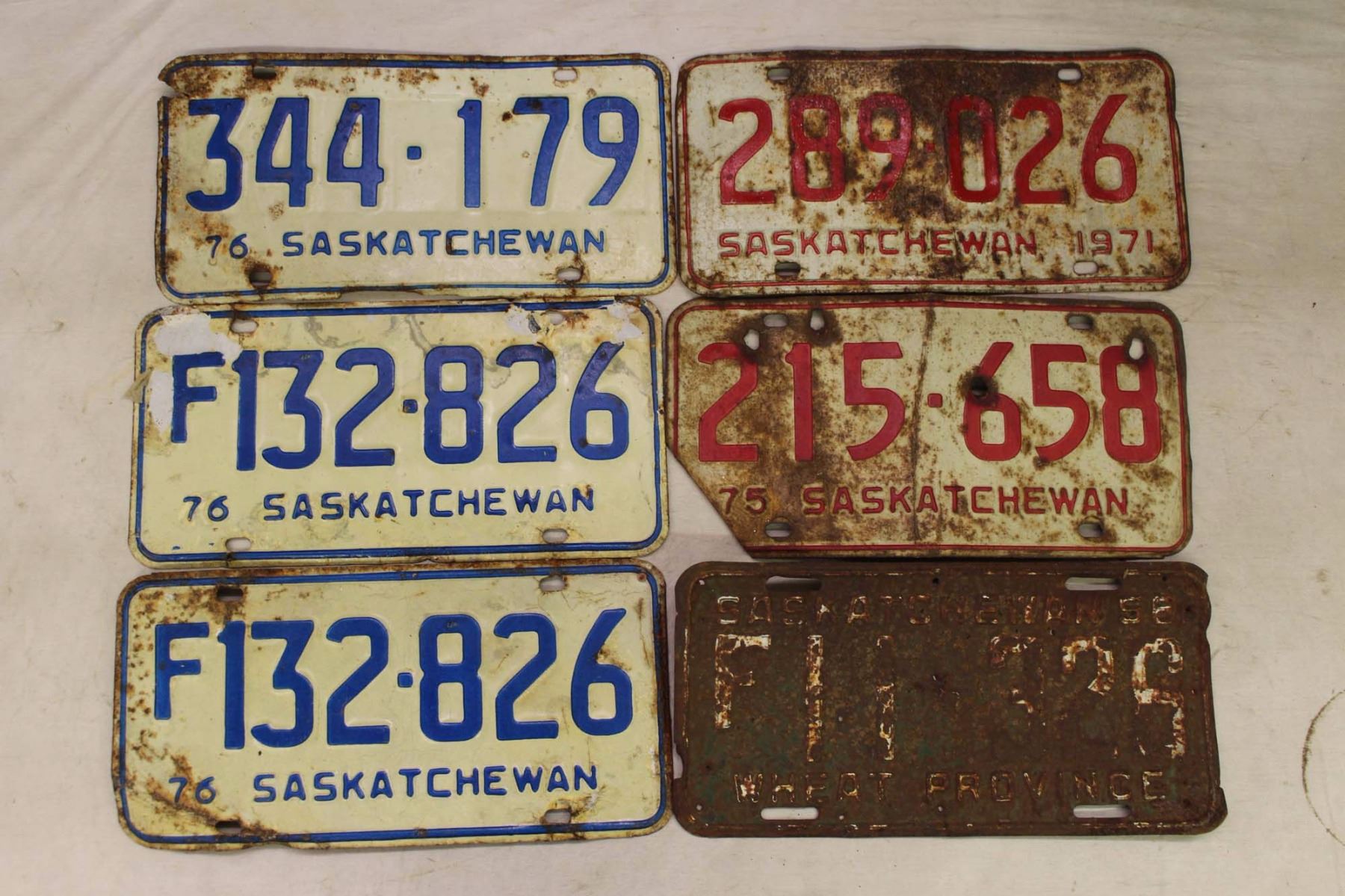 Saskatchewan License Plates (6)(1956,1971(2),1976(3))