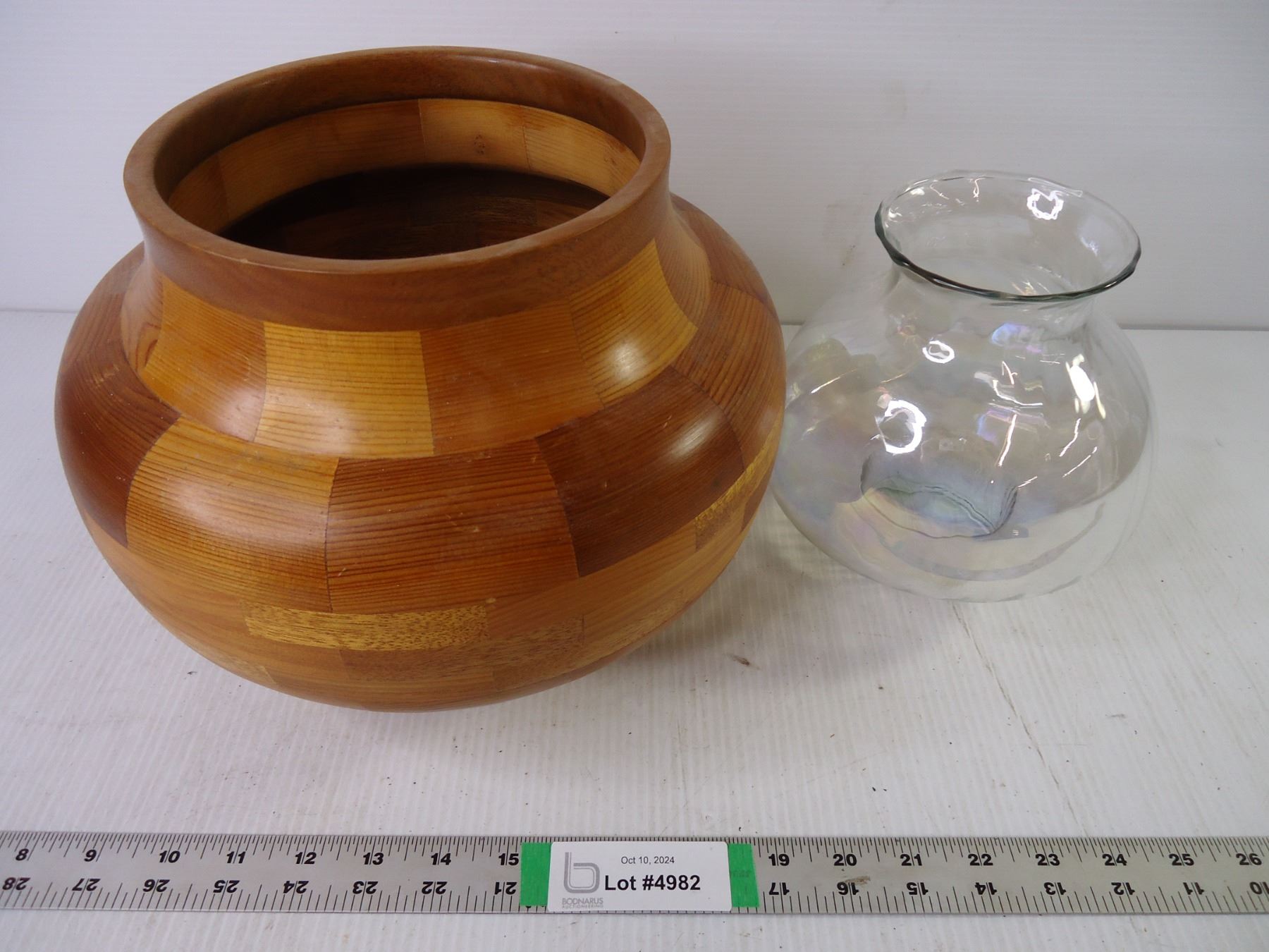 Saskatchewan Made Wooden Rose Bowl and Glass Shade