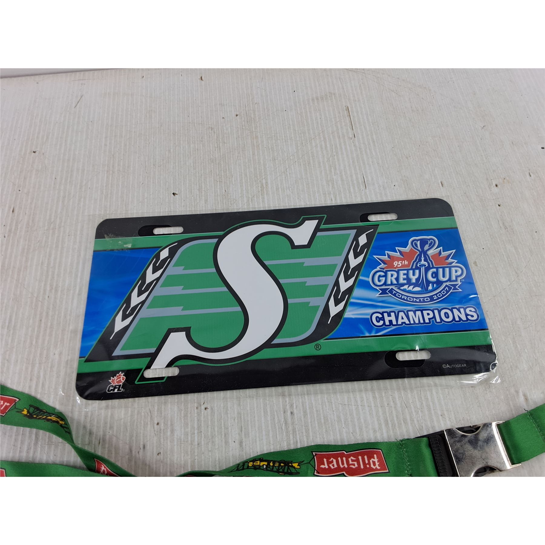Saskatchewan Roughriders Front License Plate, Pilsner Neck Keychain