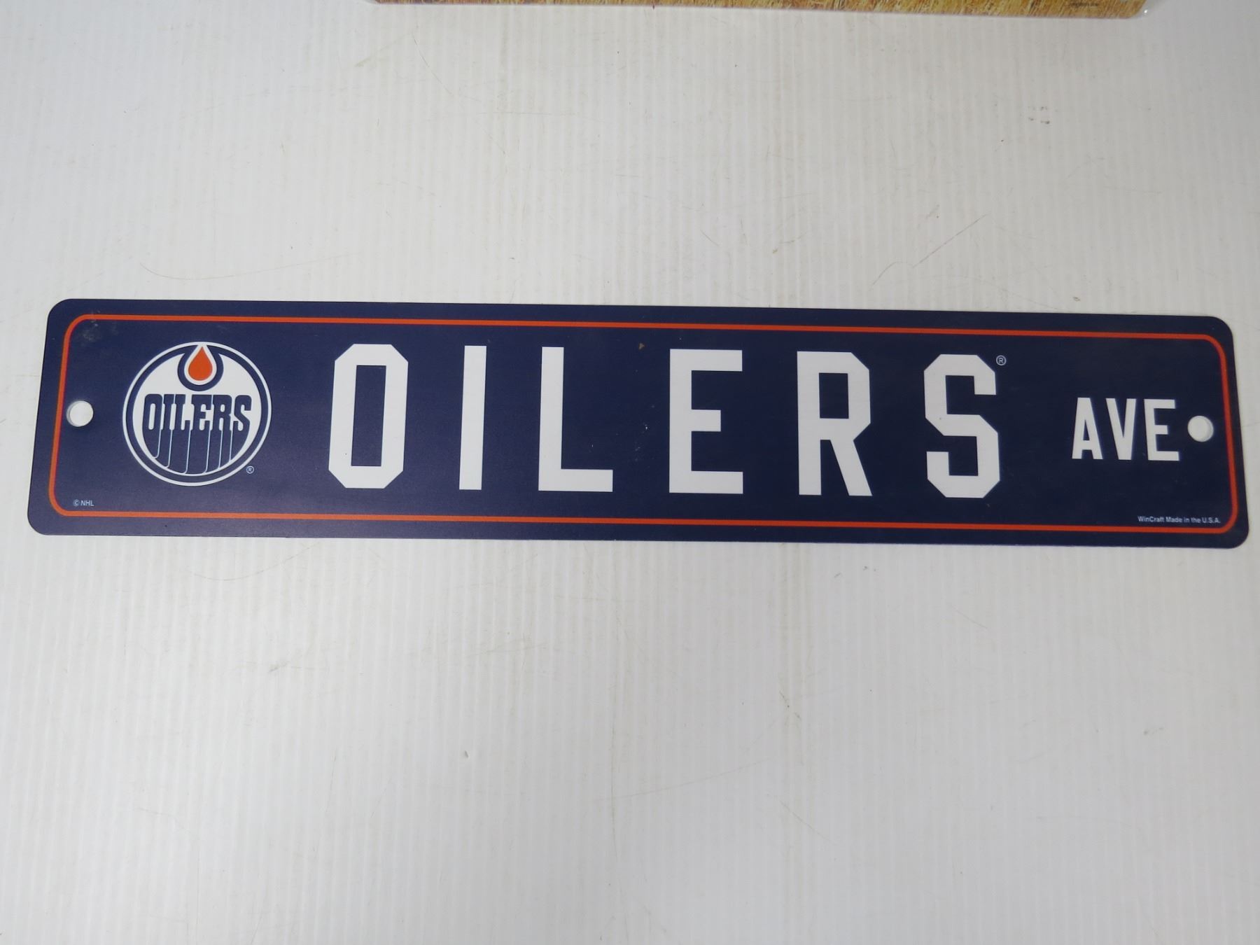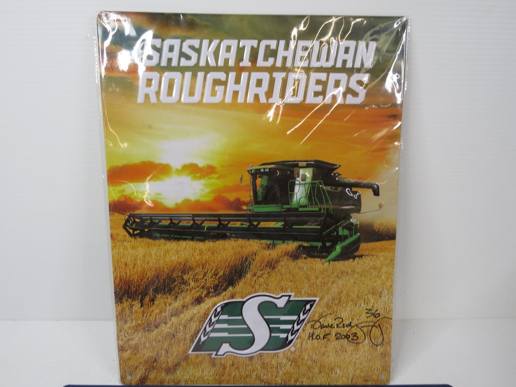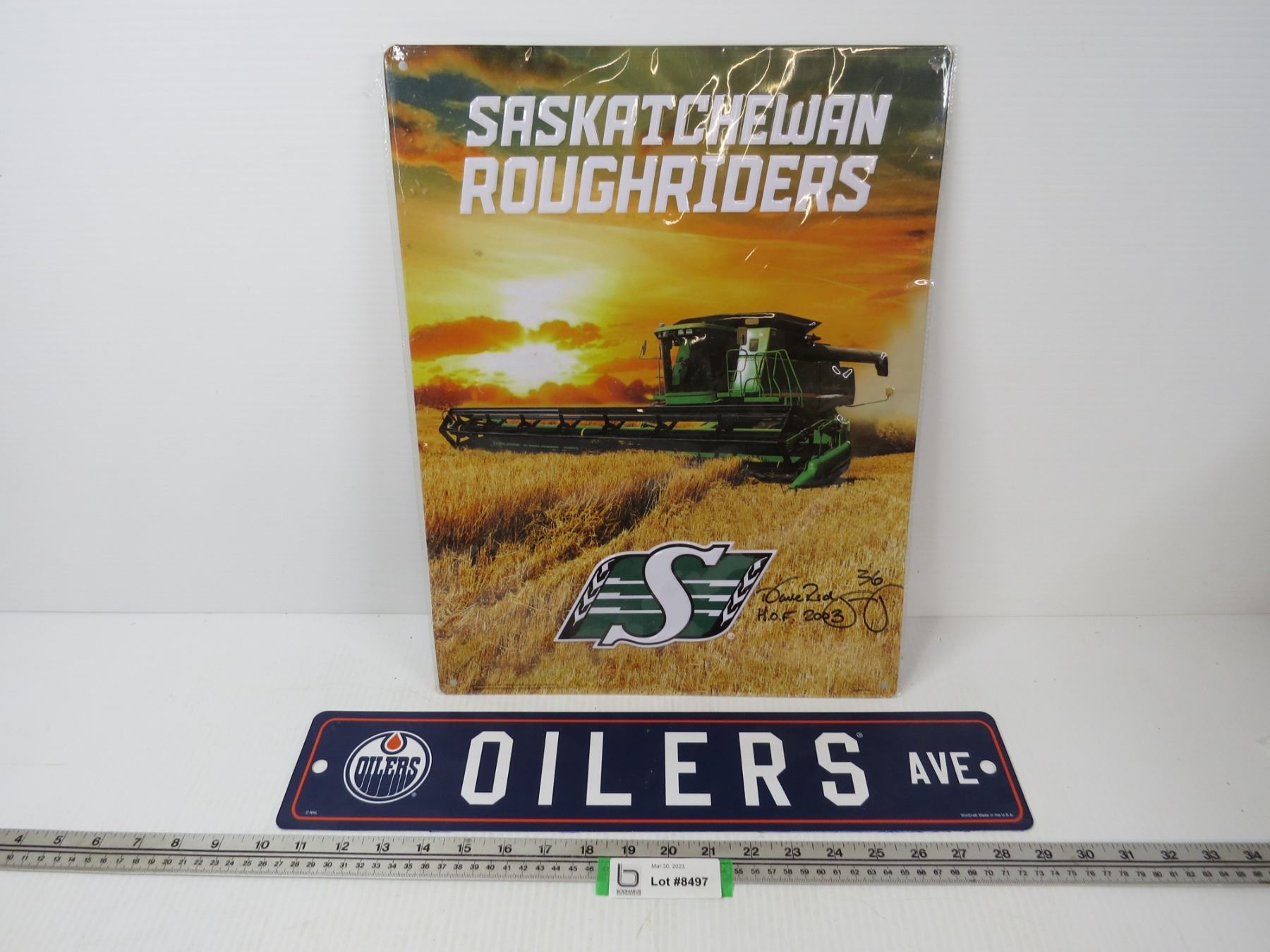 Saskatchewan Roughriders Tin Sign (signed by Dave Rid) - Plastic Oilers Sign