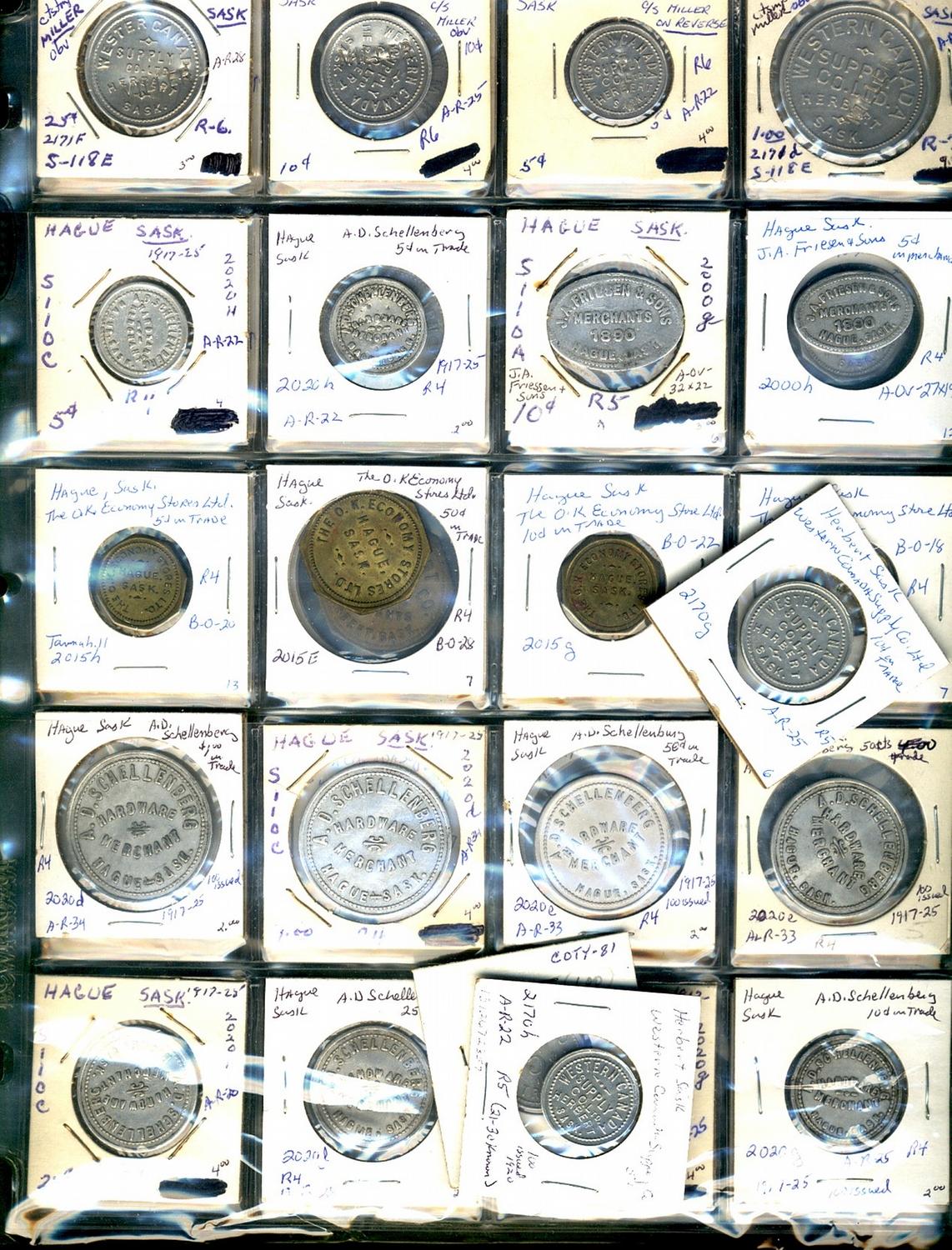 Saskatchewan. Various dairy and merchant tokens from the following locals: Hague, Hardy, Hepburn, He