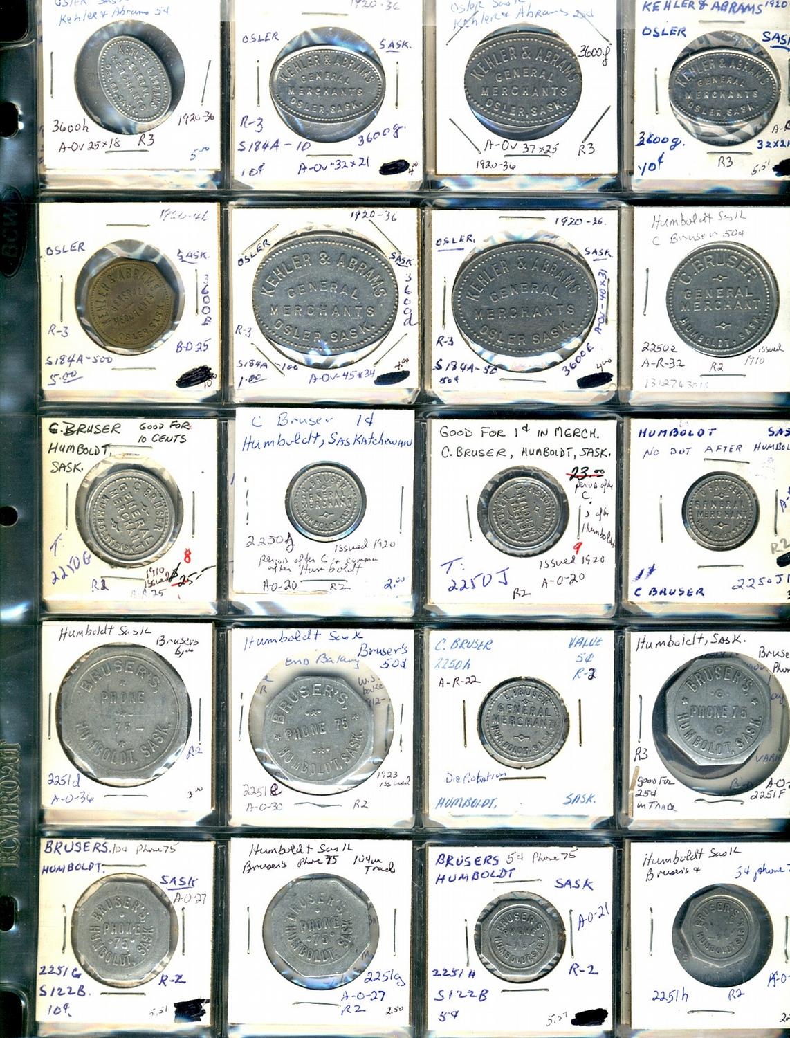 Saskatchewan. Various dairy and merchant tokens from the following locals: Humboldt, Kenaston, Manor, Maple Creek, Moose Jaw, Moosomin, Osler. (40 pieces)
