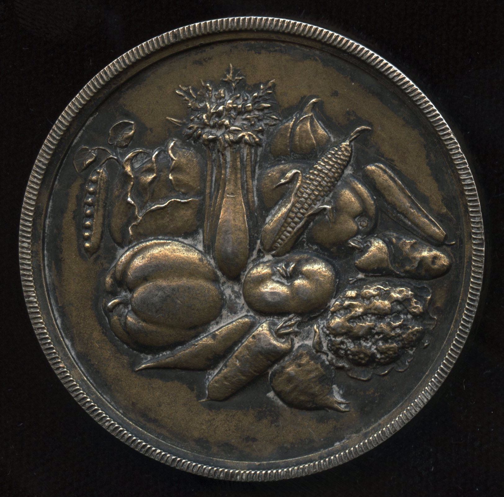 Obv. Beautiful Produce Scene, Rev. "Presented By/ R.M. of Elma/ For Best Aggregate Of/ Prizes/ Dewar Lake/ Homemaker's Horticultural/ Exhibition, silver, 58 gms, EF.