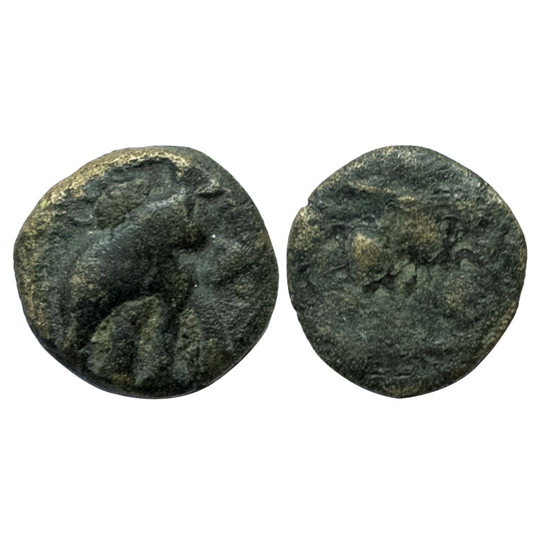 Satavahanas, KosikiputaSiriSatakani (c.50-30BC), 'Elephant' type, Newase-Paithan Region, Copper Unit, 2.18Grms, Obv: Elephant marching to right with trunk raised, around traces of Brahmi legend, Rev: Tree with large leaves in a railing. (Pieper # 2609).Fine.